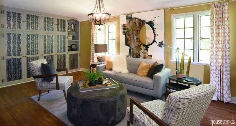 Interior designers Julie Cochran, Abby Connell, Decorating Den Interiors; Upholstery A to Z Upholstery; Paint Sherwin-Williams Intellectual Gray, Canvas Tan and Mannered Gold