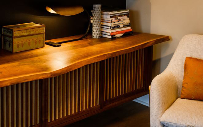• Desk designed by George Nakishima, an innovator in 20th century furniture design and a father of the American Studio Craft Movement.