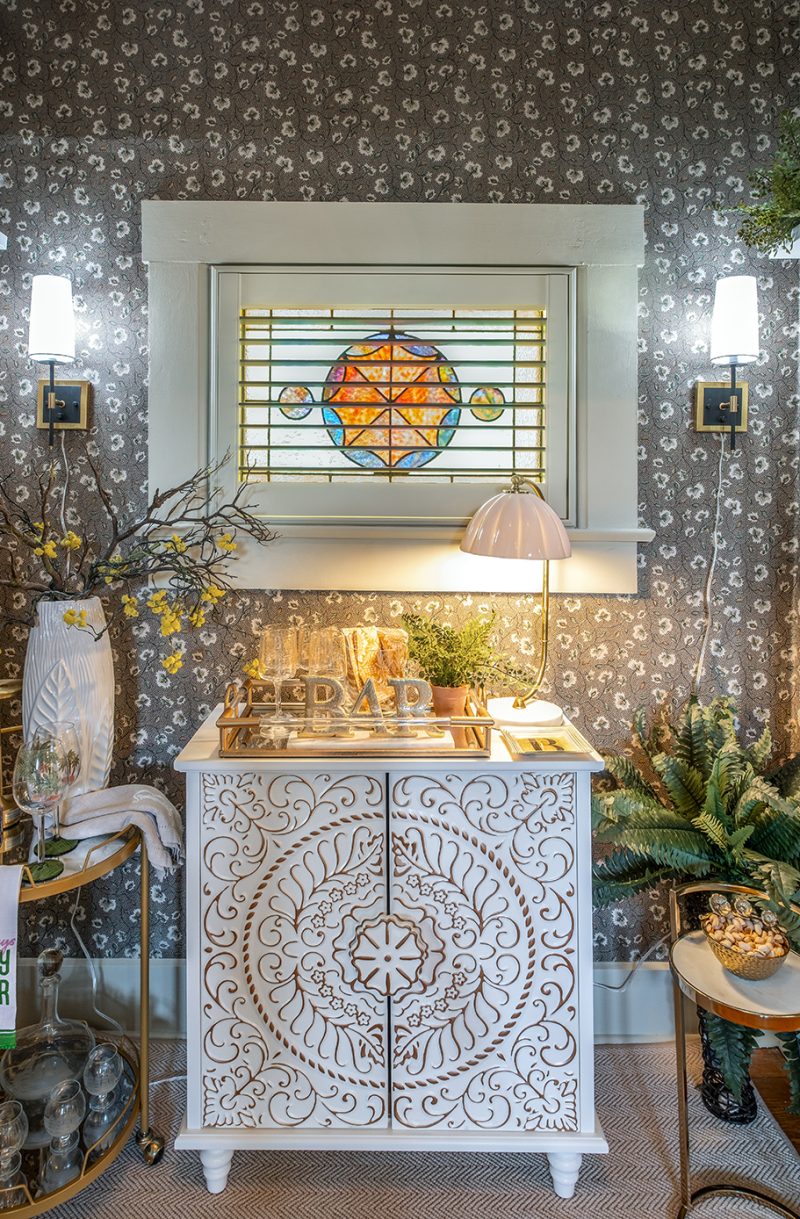 Once a modest closet, this space was reimagined into a charming and functional drink nook.