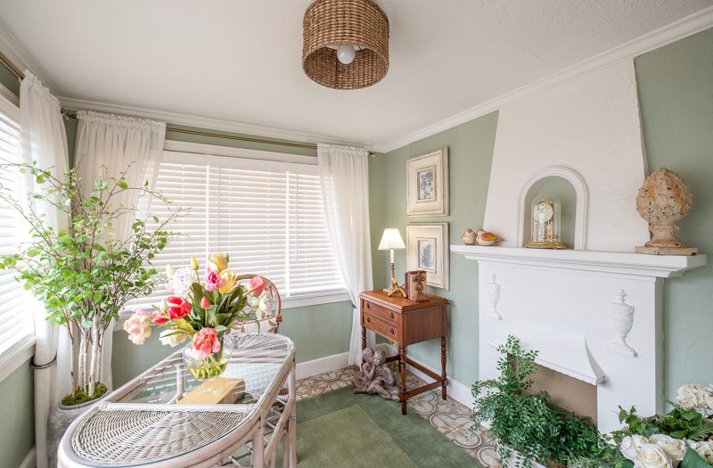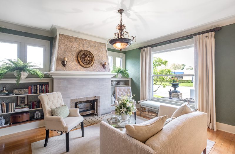 Anchored by the original fireplace, this space exudes quiet elegance and enduring craftsmanship.
