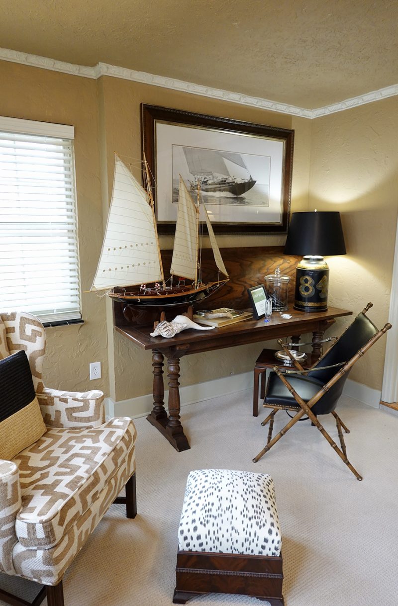 Designed as a quiet reading space, or room to unwind, this office reflects the homeowner’s love of sailing.