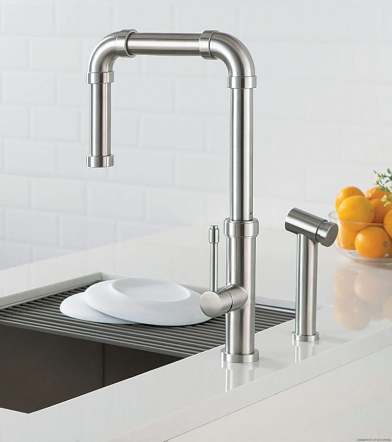 Be prepared to see more of this edgy look this year. Industrial design is all about exposing the natural, raw elements in a space. Think brick or wood paired up with mixed metals and concrete. Shiny steel, such as stainless appliances and chrome plumbing fixtures, like the new Tanz kitchen faucet from Isenberg, bring a hint of coolness to the warm, earthy materials.