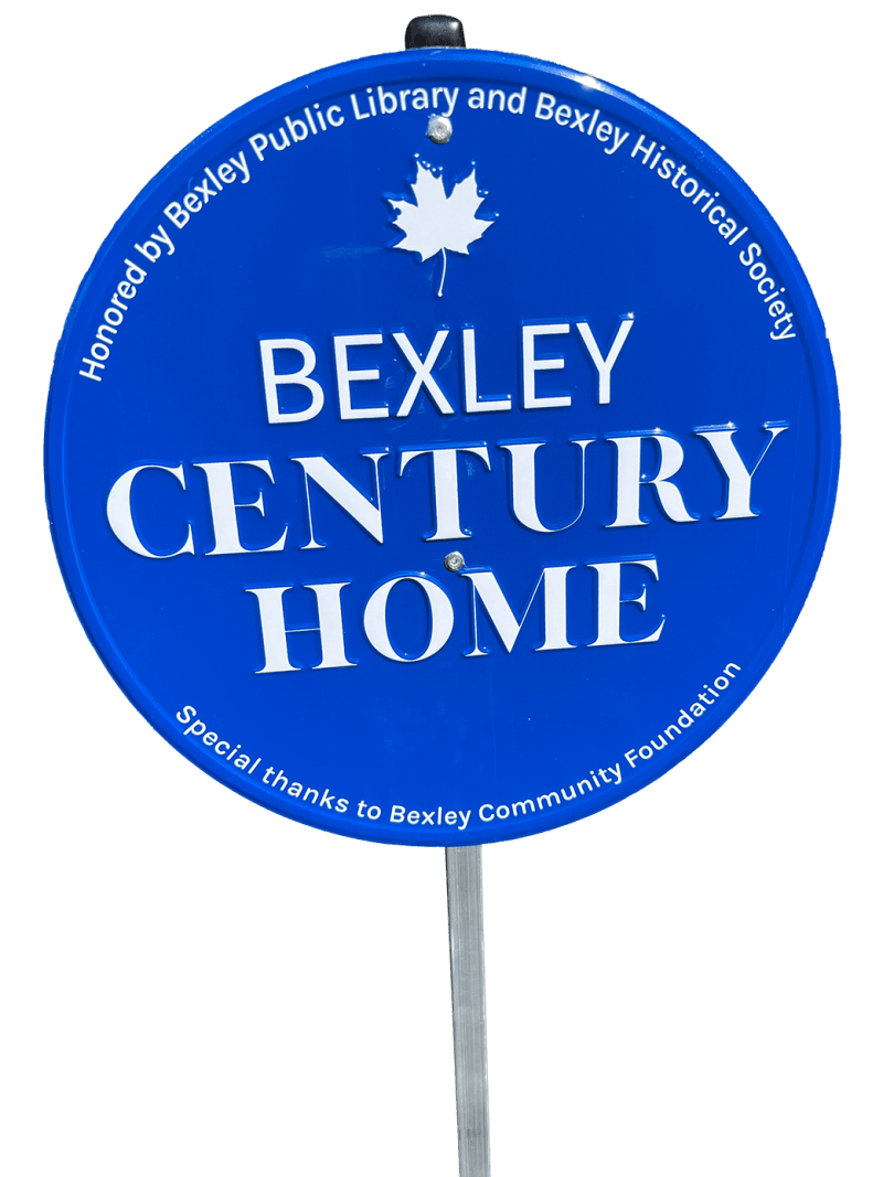The Bexley Century Home initiative was developed to honor and recognize the 705 homes that were built in this community in 1924 or earlier. Homes on the tour, and all 100 year or older homes in Bexley, may display a specially designed blue circular Century Home yard marker. These signs are provided by an ongoing joint venture between the Bexley Historical Society and the Bexley Library and are funded by a grant from the Bexley Community Foundation.