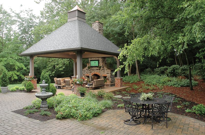 This bathroom includes key relaxation elements, everything from television to a plethora of natural light.