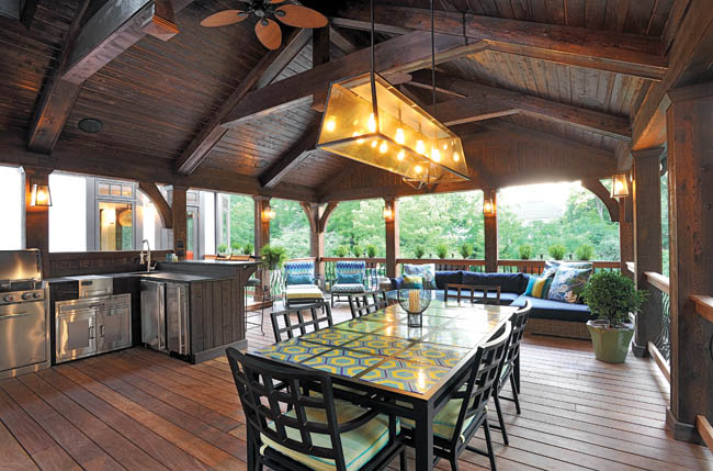 “I think they have a party almost every holiday,” says Tim Howland of The Howland Group, who handled the project along with Jason Wise, co-owner of the design-build firm. “Their old house simply didn’t have the elbow room, so having this outdoor space works well in the warmer and the colder months.”