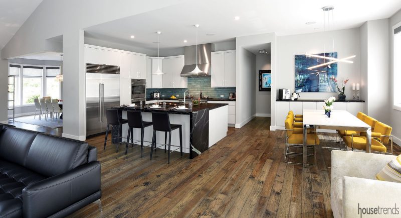 Coming from the West Coast, where tile flooring is the default for open living spaces, the homeowner originally wanted tile throughout the first-floor common areas. But, deStefano convinced her otherwise, mainly due to the fact that two full-grown German Shepherds live in the home as well.