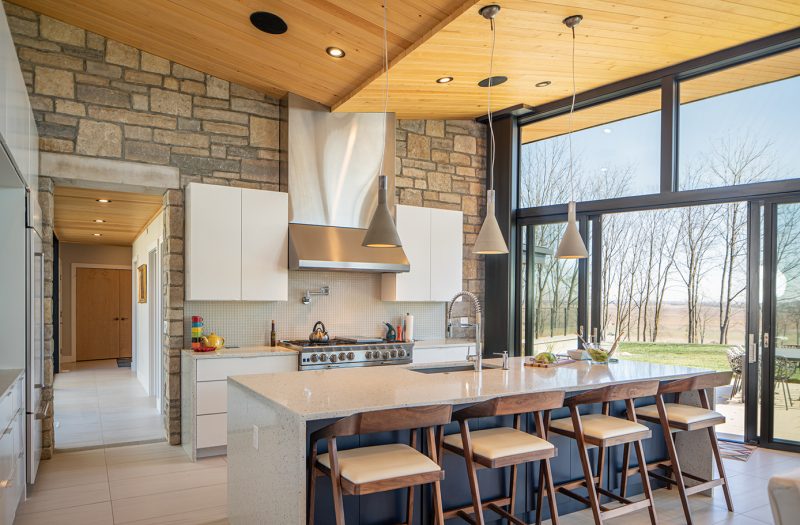 Because of Sarah and Glen’s desire for their home to sit effortlessly on the farm, they wanted to use as many natural elements as possible. They also wanted to take advantage of the vast views and privacy out the rear of the home.