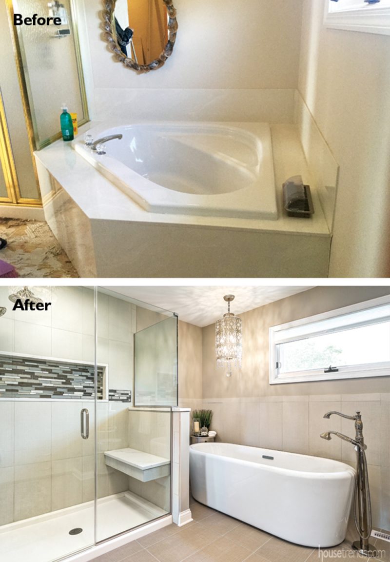 By changing the location of the tub, the remodeling team was able to create a much larger shower. Plenty of closet space is usually a good thing to have in a home. But when that closet crowds in on an adjacent bathroom, making its layout quite narrow and awkward, it might be time to rethink priorities.