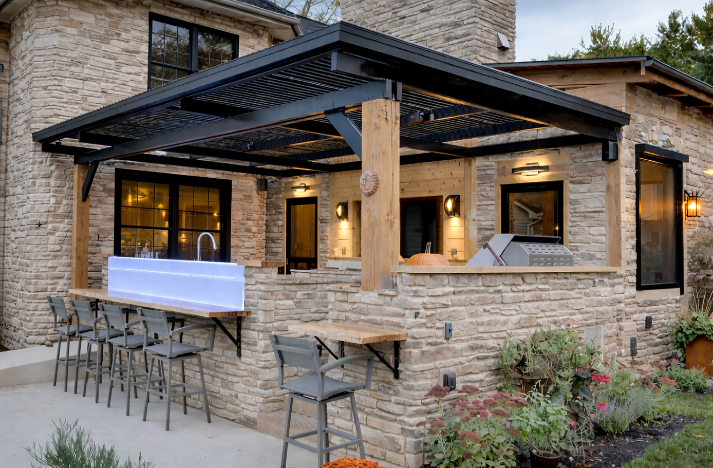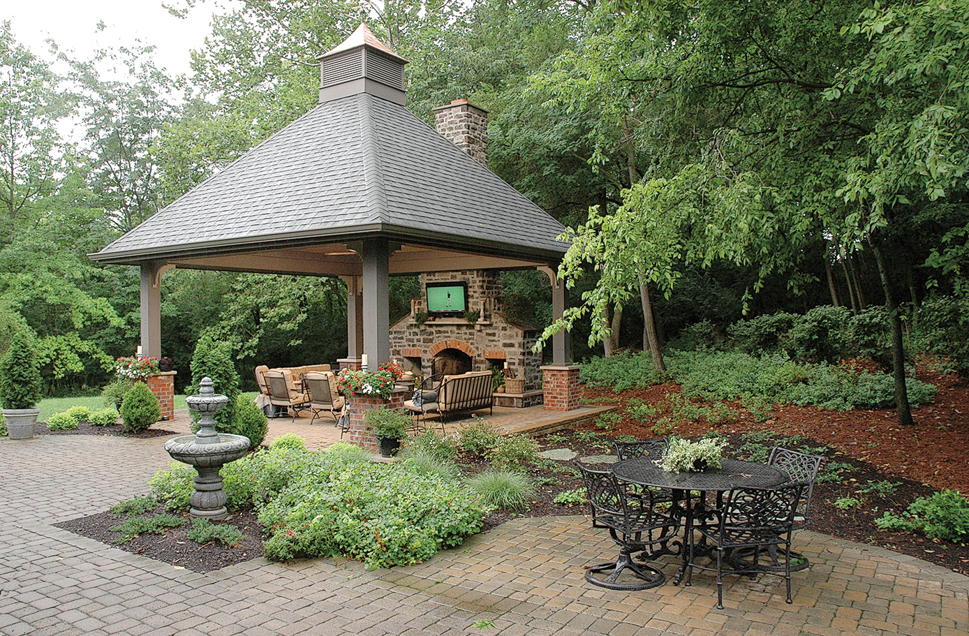 RESOURCES Architect Sheri Scott, Springhouse Architects; Landscape designer Dwight Goodin, Siebenthaler’s; Interior design Lindsey Engler, Springhouse Architects; Lighting Switch Lighting & Design; Flooring Florida Tile; Floorco Flooring; Window treatments Blinded by Aerolux; Windows Andersen; Fireplace Dayton Fireplace Systems; Front entry door Pivot Door Company; Kitchen cabinetry Don Justice Cabinet Makers; Quartz countertops Dark Star Marble & Granite; Kitchen backsplash Florida Tile; Sinks and faucets Centerville Winsupply; Appliances Bosch dishwasher; Miele induction cooktop; Sub-Zero refrigerator; Wolf oven and steam oven, Appliance Gallery; Audio/video Hanson Audio Video