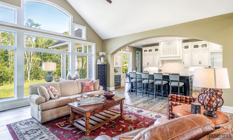The open concept was deliberate, as the owners wanted to be able to see the entire first floor from the foyer. “We really wanted the house to feel large; they did some wonderful work with the ceiling to bring depth and height and grandness to the entry and great room,” says the husband.