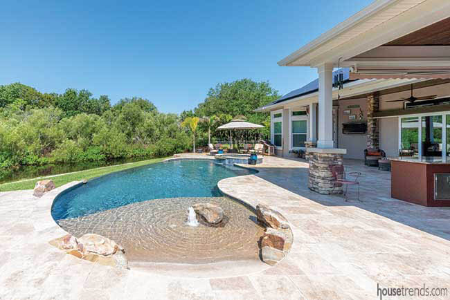 “My favorite feature in all of nature is waterfalls,” Laura says. “Every trip we take, we try to find a waterfall. So I really like that we were able to build it into the pool.”