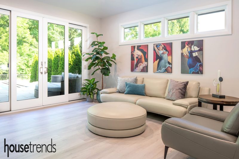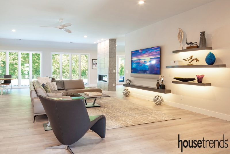 The couple’s previous 6,000-square-foot house had a pool outside and a walkout basement. “After our kids left, we mainly lived on one floor,” Tonia says. “We hardly ever went downstairs—not to use the pool table, the bar or the theater.”