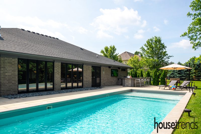 Let’s start in the back yard. To call it a yard is a bit of a misnomer. While there is a generous strip of grass back there, an expansive 17-by-40-foot pool dominates the space. An outdoor kitchen stands off to the side, ready to serve up friends and family and a four-hole putting green is placed on the other side of a small slope. Both Rick and Tonia are avid golfers, and this space is used to perfect their game as well as introduce their young grandchildren to the sport.