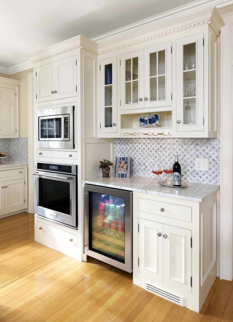 Susan did recommend and design new cabinetry in three areas. First, in the kitchen a dated and cluttered built-in desk was seamlessly swapped out for a guest-friendly coffee and drink station.