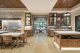 The 25-foot-long reflecting pond is visible through the windows of the kitchen and living room, visually tying the home’s interior to the outside landscaping and recreational zone.