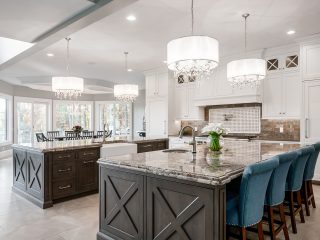 The winding roads that lope into the countryside east of Columbus are dotted with rolling pastures and equestrian estates. One such road leads to a little piece of paradise nestled among 31 wooded acres. Formerly a modest English Tudor built in 1980, the home was sorely in need of a makeover, and Neal Hauschild and Jeff Ramm were just the people to tackle it. The end result is luxury living at its finest, where every room shines. Case in point: Golden sunlight from the outdoors is maximized in every room, and the layered lighting on the indoors is just one of many standout features.