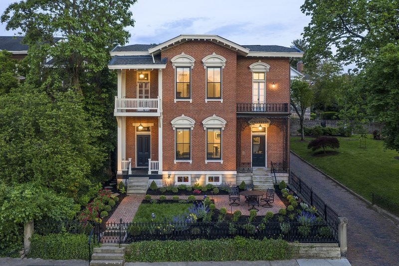 Downsizing is not the first word that is called to mind when one steps inside a totally reimagined home in Covington’s Licking Riverside Historic District. The Italianate treasure, originally dubbed the “Skiff House” when it was built in 1850, oozes glamour from every room. Twelve-foot ceilings set a dramatic stage throughout most of the first floor, and even taller, 14-foot ceilings grace the second floor. Between the main house and a newly constructed carriage house, there are four bedrooms, two studies, four full baths and plenty of indoor and outdoor entertaining space.