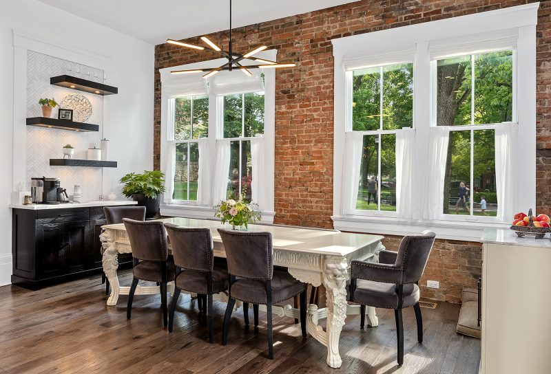 Until recently, the structure was sub- divided as a four-family rental and was owned by architect John Becker and his family. When the decision was made to restore the home to a single-family residence, Becker called upon the talents of James and Rob Kennedy at Legacy Custom Builders. The plan was to preserve as much of the character of the home as possible, while adding 21st century conveniences.