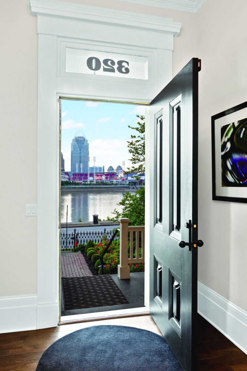 After all, it really is all about the view. Each window facing north frames a prized slice of the Cincinnati skyline, whether it be the Reds’ stadium or the Great American Tower. Barges and pleasure boats pass by at regular intervals and couples, and families stroll along the street or in the park next door. The Byrons say there can be as many as five wedding parties a day gathering for photographs along the river in front of their home.