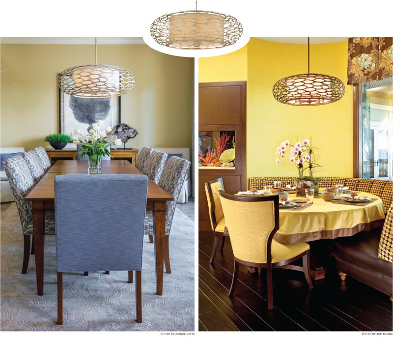 The Corbett Lighting Cesto Chandelier is featured in a Tampa dining room and a Tampa breakfast nook.