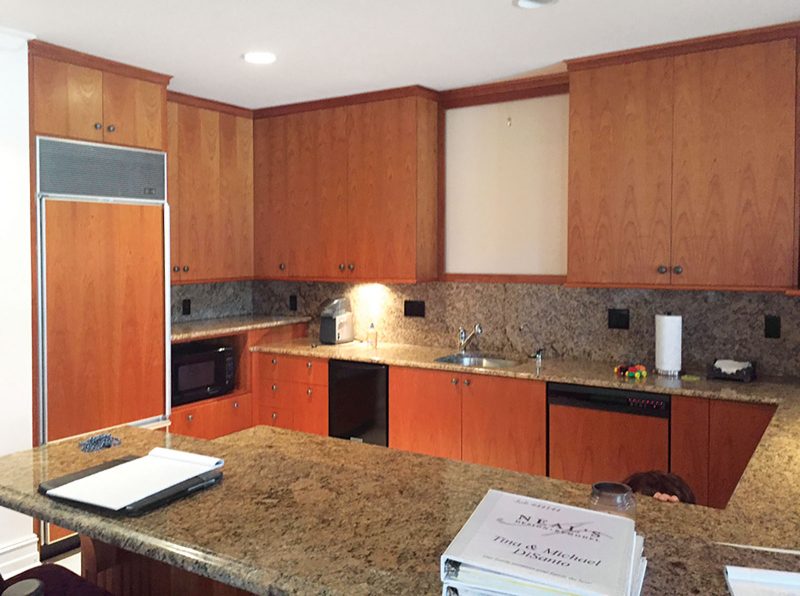 “All the prep work is done in the back kitchen and all the serving is done from the wine bar,” Kohler explains. The kitchenette was reconfigured to be more open and was updated with a new look, tying it in with the bar. “It’s amazing how well the cabinets fit in their new, open configuration.”